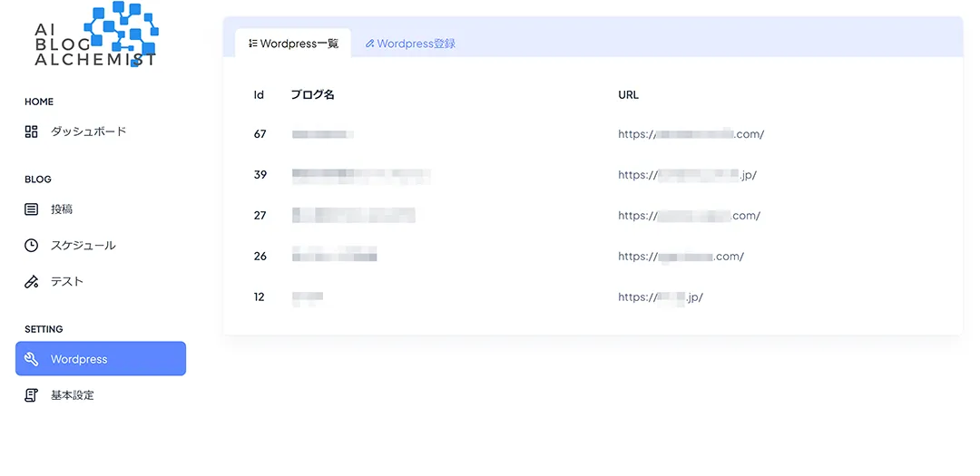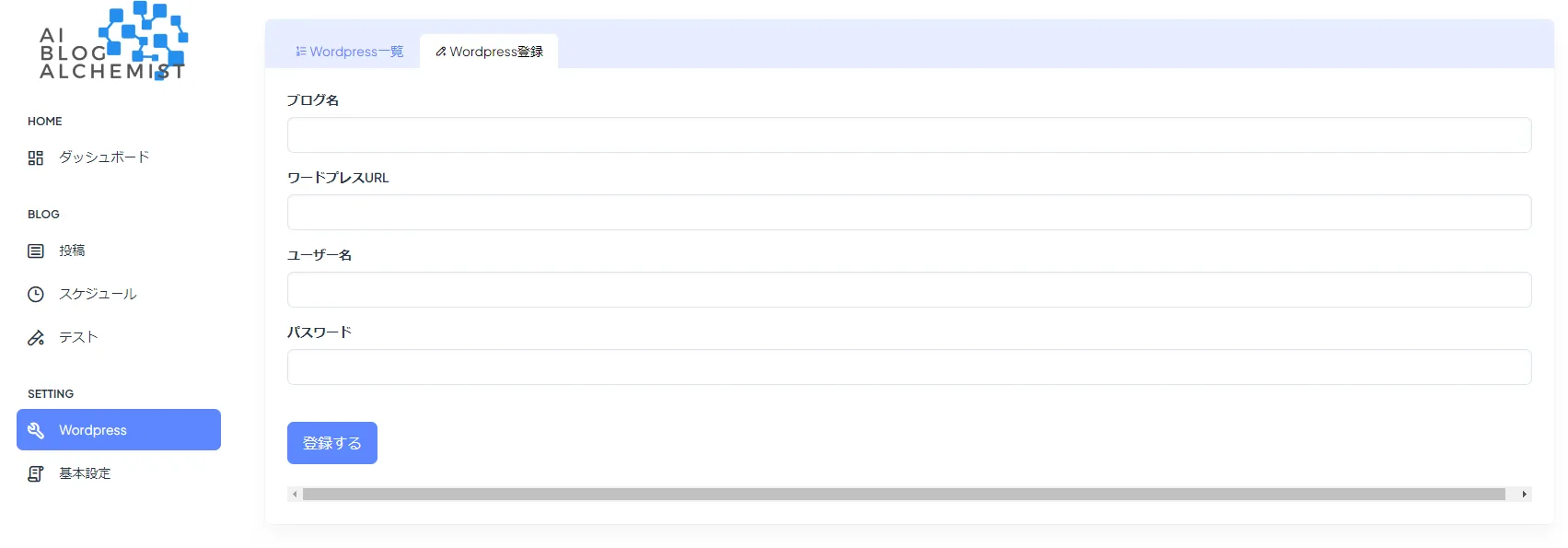 STEP1で発行した24桁のアプリケーションパスワードを使用し、WordPressとAIブログアルケミストを接続します。