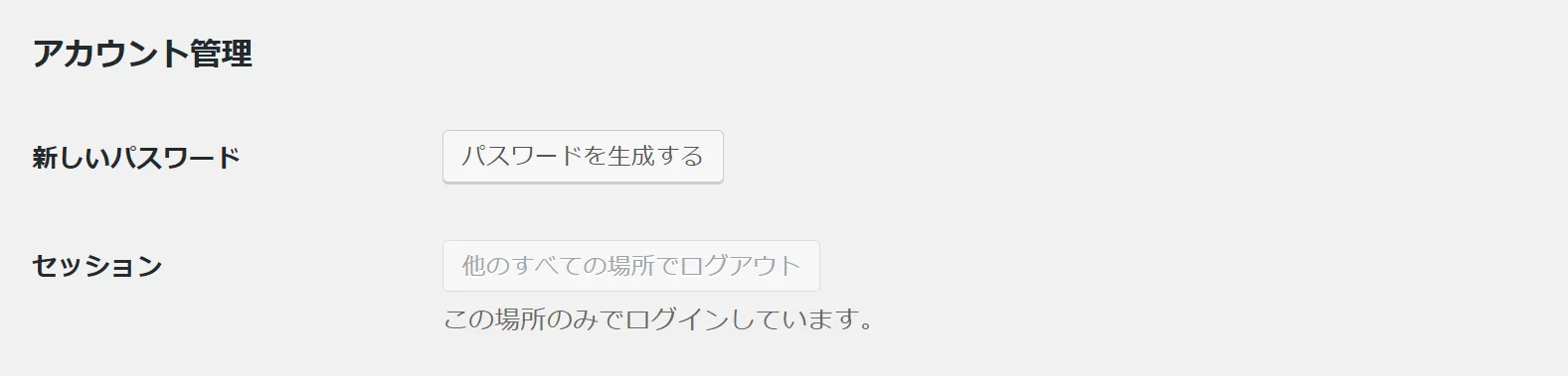 ユーザーの詳細情報内に「Application Passwords」という項目が追加されます。